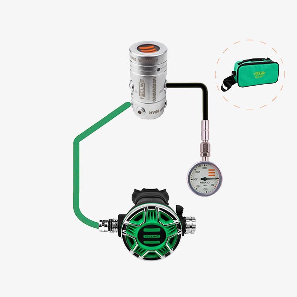 R2 O2 1단계 + TEC2 O2 2단계 + 프로플렉스 저압호스 100cm 그린 + 52mm 300bar O2 SPG + 고압 러버호스 20cm + Green bag포함