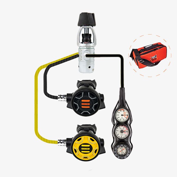 R1 요크1단계 + REC1 2단계 + REC1 옥토퍼스 + 저압호스 70cm + 저압호스 90cm 옐로 + 호흡기 가방 + EVO콘솔 3게이지