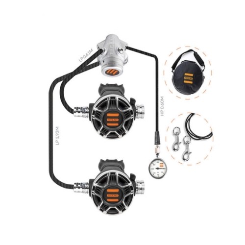 V1 요크 1단계 + TEC2 2단계 + 저압 러버호스 60cm + 저압 러버호스 200cm + 52mm 300bar SPG + 고압 러버호스 61cm + 스텐싱글스냅 88mm 2개 + 호흡기 가방